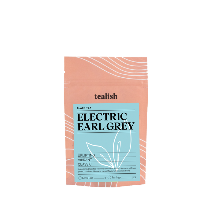 Elevate your tea ritual with this vibrant twist on a timeless classic. Electric Earl Grey begins with a full-bodied black tea base, skilfully flavoured with double bergamot oil, and enriched with delicate floral accents from mallow blossoms, sunflower petals and safflower. With each steep you’ll discover bright citrus-top notes, a softly aromatic heart, and a smooth, lingering finish — an elegant and energizing way to start your morning or recharge in the afternoon.